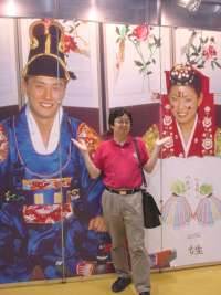 韓国カラーの赤いポロシャツ姿の私(韓国から帰って来てからちょっと太った……)