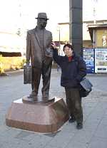 柴又駅前の寅さんの像と/偶然前日テレビで寅さんやってた