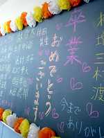 最後の教室、黒板には卒業らしいお祝いの文が……