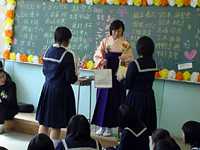 卒業式後、教室で最後の授業=学活で先生に花束を!