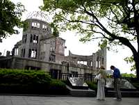 原爆ドーム前の神妙な外人夫婦