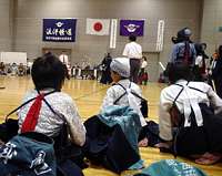座間市剣道大会の一回戦で負けて呆然としている三男の後ろ姿(左端)