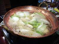 これが三人前840円のふぐ鍋/ちゃんと白菜や豆腐やきのこや白滝も入ってる!