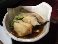 小さいけれどぷりぷりしていておいしいふぐの身/日本酒の熱燗が合うねぇ!