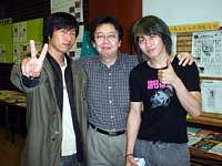 地元・広島に帰って活躍している水島憲弘(私の左)と、今回の『フラワーズ』に特別出演してくれた平原晋太郎/二人とも元・月光舎で、頑張っててうれしい!