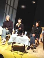 『無駄骨』作者のいつも少年のようなチャン・ジン(左端)と演出の大鷹明良(右端)