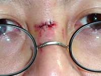 痛々しい目の間の3針の傷跡/もうちょっと上だと急所だったといわれたけど……