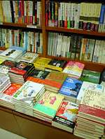 博多駅の紀伊國屋書店(ワンフロアで広〜くて座り読み出来る椅子まである!)の演劇書のコーナーでは、なぜか私の『おとぎげき』(中央下の黄色いカパーの本)が、最近、平積みされている!/周りには成井豊や古田新太や松尾スズキや寺山修司や平田オリザや鴻上尚史の本が……
