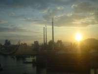 帰りの新幹線の中から、ついつい撮ってしまう美しい瀬戸内の夕景/徳山付近の工場地帯にて