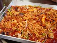 昨年の月光舎韓国公演中止のお詫びをして、あらためてこれからの関係にキム・デヒョン氏と乾杯!/大学路の海鮮料理屋にて