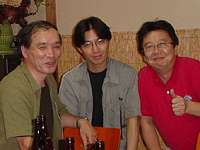 左から、福岡演劇のひろば主宰の薙野氏、FPAP事務局長の高崎氏、そして私/オフ会会場の天神にある割烹かがわにて