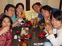 演劇微小集団ふわっとりんどばぁぐの劇団員たちと稽古の後の乾杯!/場所はどこかわからない(酔ってるわけじゃなく、あまり行ったことのない場所なので)居酒屋にて