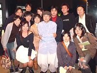 「これは見逃すと損するよ!」という私の言葉を信じて『真夜中の弥次さん喜多さん』を観に来た、演劇好きの学生たちと記念写真を撮ってくれた作・演出の天野天街氏(中央)