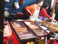 締めはやっぱり屋台でしょ! 大きな鍋におでんがグツグツ、おにぎりはあるし、おはぎまである! しかも、酒は持ち込み! 博多の屋台とちょっと雰囲気も違う……
