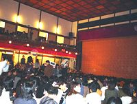 開演前の桝席の間に西鉄バス軍団が……実に不思議な光景でした/ちなみに、嘉穂劇場には西鉄バスで来ました!