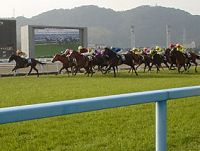 やっぱり目の前を実際に馬が走り抜けてゆくのは美しい! ドドドドドと走ってくる音も生で聞かないとね!/小倉競馬場ゴール前にて