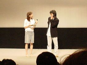 『アタック・ザ・ガスステーション』や『風林高』、『ラスト・プレゼント』などの脚本家だった、『風の伝説』のパク・チョンウ監督(右側)/左の通訳の人も、会場スタッフもみんなポランティアの映画祭