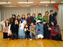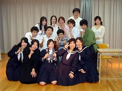 学院祭での1年生の舞台発表の集合写真、第二弾(10月2日分)! 劇団いき≠ばた『絆という名の奇跡』[光]/いじめ役の子たちが、普段はおとなしいんだけど、水を得た魚のように生き生きと演じていて、リアルだった! 2005年学院祭にて10月2日上演