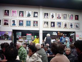 場内に飾られている、ここで公演をした大衆演劇の座長たちの写真と、その下は売店/酒を飲んだり、おでんを食べたりしながら観られるのがいい!