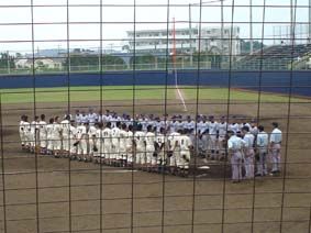 勝っても負けても、父兄やOBたち等関係者のいる応援席に挨拶!/さすがに負けた後は、ちょっと放心状態の21人……負けて強くなれ! 次は3回戦突破だ!