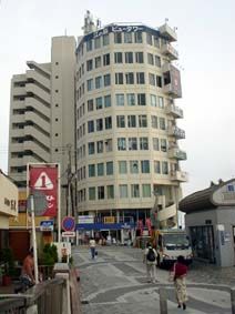 片瀬江ノ島駅を出て正面に見える旧サマリアビル、現在は江の島ビュータワー、ここの4階に天文館はあった!/そういや、昔はその手前の左側にマクドナルドがあり、夏は売り上げ日本一だったらしいけど、いつの間にかファーストキッチンになっていた! マックは駅を出てすぐ右側に移っていた!