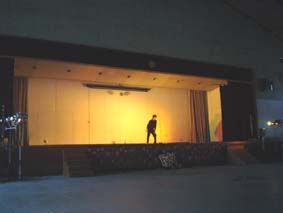一人芝居・その2/照明や音響は友人が手伝ってくれて、シンプルだがそれなりに出来ているが、いかんせん声が聞こえない! 耳に掛けるワイヤレスマイクとか使えば、それなりに、カッコよかったかも!