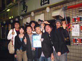 新宿西口のしょんべん横丁こと思い出横丁の鳥園の前で、今年の福岡校の卒業生たちと/まぁ、段々といつも同じメンバーになっていく(笑)