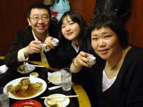 ![]() 上野・アメ横の焼き鳥屋「大統領」の、屋台のような店先で、左から私、コ・スヒ嬢、熊谷氏、キム・ミソン嬢、熊谷氏の友人A氏/とにかくこの日は寒かった! ストーブ炊いてたもん! ![]() スヒが選んで買ってくれたお薦めの韓国食品の数々/右下にあるのがノビアニで、その上が3種類のラーメン。左が韓国海苔で、ここのが一番おいしいらしい。その下にあるのがインスタントのおかゆ2種類。少しずつ食べてる。 ![]() お多幸にて、おでんと熱燗で乾杯!/韓国では、お酒を温めて飲むことはないらしい。温めるとしたら、日本酒だとか。二人とも熱燗も結構いけるくち。 |