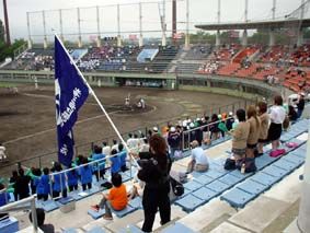 小田原球場での藤沢総合高校と光明学園相模原高校の試合の藤総側の応援席/やはり私立の光明の応援は派手でうるさかった(笑)! 藤総の応援団長は女の子で、負けた後のエールの交換は、泣けた!
