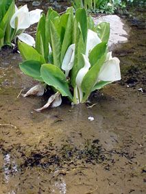 満願寺の境内の池に咲いていた水芭蕉と、下の方にウヨウヨいる黒いのはおたまじゃくし/40年ぐらい前は下北沢近辺にも田んぼがあり、おたまじゃくしがいて、取って来て飼ったりしたのだけど、本物を見たのは久しぶり!