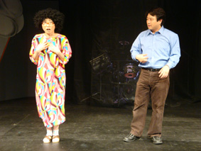 舞台写真1/主人公の現在のファン・ジェギュ(左)とキョンスク(右)