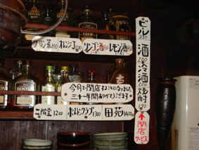 閉店サービスでほとんど原価のような値段にしている酒/普段からも安く、この店に初めて人を連れて来ると、みな驚いた