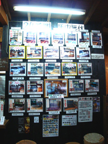 温泉の入口にある、使われているかどうかがわかる26種類の風呂の案内写真/まるでラブホテルの部屋案内のよう! 電気が点滅するパネルじゃなくて、写真に手書きだけど(笑)