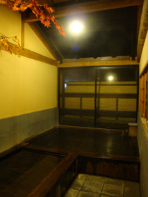 観音岩温泉の壱番かえでの湯/天井が空いて、上を見上げれば満月が見え、川のせせらぎも聞こえてくる中で浸かる温泉は極楽極楽!