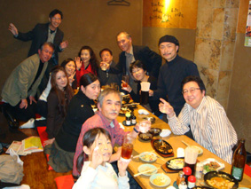 毎度おなじみ"ふとっぱら・天神店"での福岡の演劇関係者や演劇好きな人たちとの飲み会/年齢層も幅広い、この人たちがいるから福岡に行きたくなる!