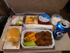 海外旅行定番の機内食の写真・今回はアシアナ航空/アシアナの機内食は、まぁいい方だと評判で、確かに去年の大韓航空よりはちょっと豪華! ビールは2本飲んだ!