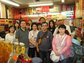 クマさんが紹介してくれた南大門市場の高麗人参の店で、おみやげの品を探す石塚やd'Theaterのメンバー/高麗人参といっても、当然ピンからキリまでいろいろある