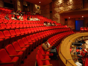 開場してしばらくしても、こんな状態の劇場内2階の客席/我々は、2階の真ん中辺りの席に全員招待してもらった!
