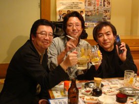 新宿西口のさくら水産で、福岡時代の上司の川島さん(中央)と、横浜時代の、というより、もう20年近く前から知っている湯浅さんと乾杯!/福岡を離れてからも、もう3年以上……月日の経つのは早い!