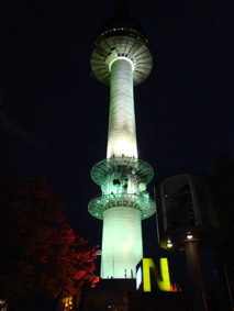 ライトアップされたソウルタワー/ソウルタワー自体は、やはり、近くで見るより遠くから見たほうがきれいだ