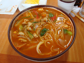 朝、チムジルバンに入った後、すきっ腹で食べたということもあるが、食べた後、胃が痛くなった、韓国のチャンポン/麺はチャンポン麺のようだし、野菜や魚介類も入っているのだが、とにかく辛過ぎて、さすがの私も参った!