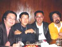 明日が本番だという前日の夜、飲みに行って酔いどれ、最終電車に乗り遅れた私と、パク・グニョン氏、チョウ・ガンファ氏、翻訳者の熊谷対世志氏(左から/新宿・BURAで)