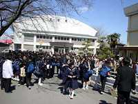 卒業式後、教室で最後の授業=学活で先生に花束を!