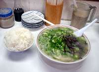 これが住吉亭のラーメン600円と山盛り(今回はちょっと少ない)の御飯100円/麺を食べた後、この御飯をスープに入れて食すと絶品!