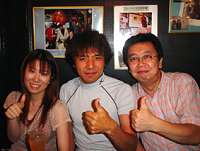 小川輝晃さん(中央)とコミック科の古賀先生(左)と私/大陸自由国籍料理 地球屋・住吉本店にて