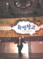 ミリオレ明洞店前のステージで踊る私/当然、夜中で誰もいないステージに、勝手に上がって踊っている!
