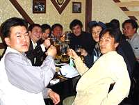 公演の後、大学路のビアホールでパク・グニョン氏や出演者たちとコンベ(乾杯)!/この日は生ビールばっかり10杯以上は飲んだ……いや、飲まされた!
