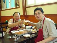 昨年の月光舎韓国公演中止のお詫びをして、あらためてこれからの関係にキム・デヒョン氏と乾杯!/大学路の海鮮料理屋にて