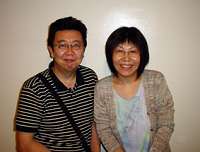 ユジンカットをしている演劇舎螳螂のガンちゃんこと、冬雁子と/なんか、いい年のおじさんとおばさんて感じだなぁ……お互い、年取ったもんだ