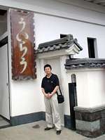 小田原の観光名所のひとつでもある、外郎家の「ういらう」の看板の前で/店の中はずっと混んでて、透頂香はみんな並んで買っていた!